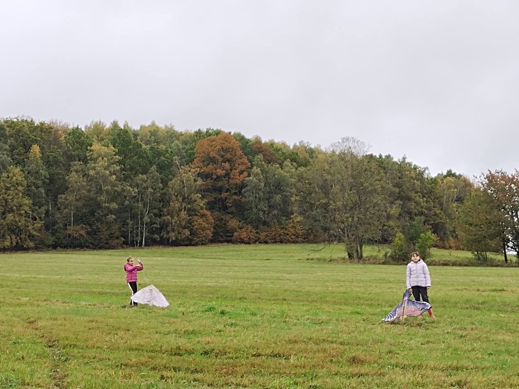 Letošní ročník se uskutečnil v sobotu 11. října 2025 na louce pod Výhledy. Vítr foukal a pár draků dolétlo až do oblak.